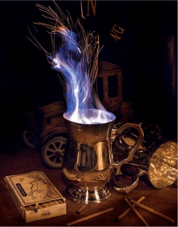 - Flambieren: Die brennende Mischung brennend 4-5 Mal zwischen den beiden Bechern hin- und hergießen, um die Aromen zu verbinden.
