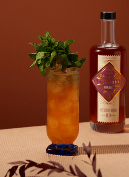 - Mit Soda auffüllen und einem Minzzweig garnieren.